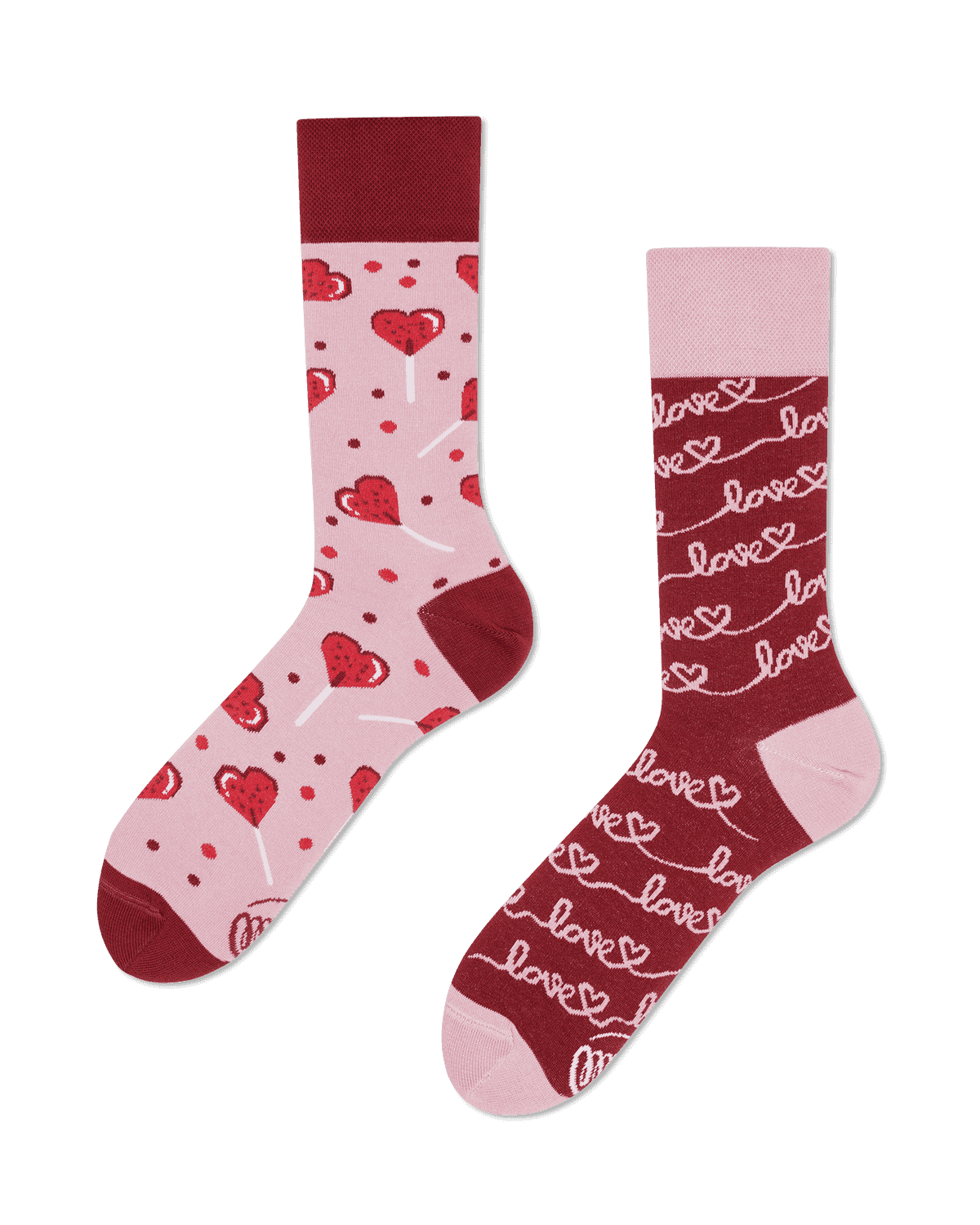 Los calcetines desparejados de San Valentín no son un mal casamiento, aunque al pensar en un amor prohibido los pies se calientan al rojo vivo. Para una unión ideal combina el diseño con unas buenas compras, ¡déjate alcanzar cada mañana por el Cupido de los calcetines!
